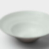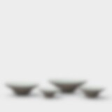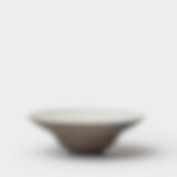Uppläggningsfat i antracitgrått stengods med rå utsida och glaserad insida i halvtransparent vit glasyr.