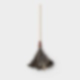 Dammvippa med träskaft, läderdetalj upptill och äkta strutsfjädrar av hög kvalitet. Fjädrarna binder effektivt damm och gör rengöringen både skonsam och smidig.