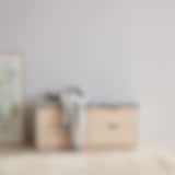 Massiv sittbänk i vitoljad björk som har fyra rymliga lådor med urtag och klädd sits med vackert fårskinn. Här finns plats för diverse som gärna får vara lättåtkomligt utan att ligga framme – såsom träningskläder, filt till barnvagnen, handskar, regnjacka, kepsar, solglasögon, hundkoppel och tygpåsar. Och mycket annat förstås.