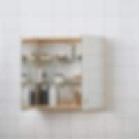 En tidlös badrumsmöbel i massiv björk som ytbehandlats med vitolja. Dubbelskåpet finns i två olika höjder, med höger- eller vänsterhängd lucka. Skåpet saknar rygg, dels som en intressant och praktisk formgivningsdetalj, men även för att medvetet minimera materialåtgången. Badrumsskåp Dubbel är designat för att placeras ovanför tvättstället – då skåpets djup bara är 11 cm. Kombinera gärna med Hyllplan och konsoler i samma träslag och ytbehandling, för att addera kompletterande förvaringsyta i badrummet.