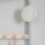 En rund och praktisk liten spegel, med bakstycke av massiv björk, som ingår i den flexibla möbelserien Klädförvaring K27 (produktblad). Minispegel flyttar du enkelt och hänger i Sparring väggskena med tillhörande beslag. Beslag finns i olika kulörer och säljs separat. Med Sparring väggskenor eller hängskenor som grund, skapar du förutsättningarna för en stilren och funktionell hallmöbel – sätt samman din personliga förvaringsmöbel!