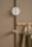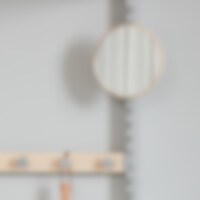 En praktisk liten spegel, med bakstycke av massiv ek, som ingår i den flexibla möbelserien Klädförvaring K27 (produktblad). Minispegel flyttar du enkelt till lämplig höjd och hänger i Sparring väggskena med tillhörande beslag. Beslag finns i flera färger och säljs separat.